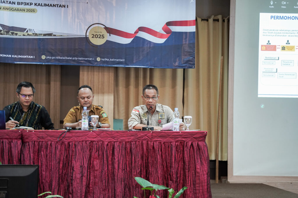Pontianak – Kantor Wilayah BPN Provinsi Kalimantan Barat menghadiri Rapat Sosialisasi dan Penguatan Informasi terkait Likuiditas Fasilitas Pembiayaan Perumahan (LFPP) dan Kredit Pemilikan Perumahan (KPP) serta Evaluasi Kegiatan di Lingkungan Balai P3KP Kalimantan I Tahun Anggaran 2025 pada Selasa, 23 Desember 2025.